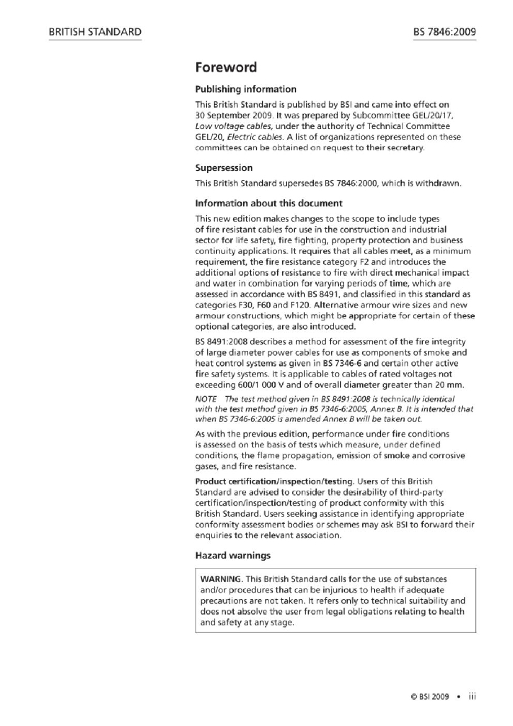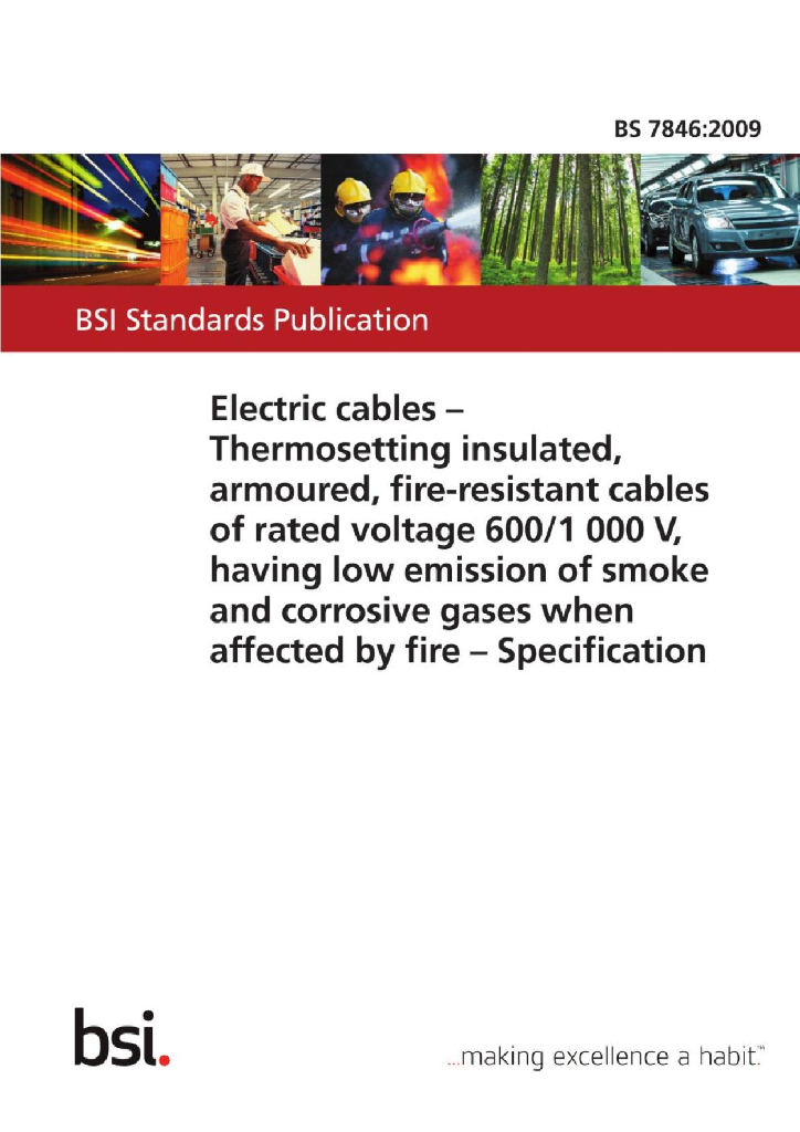 BS 7846:2009 电缆.受火影响时排放少量烟和腐蚀气体的600/1000V热固绝缘铠装耐火电缆