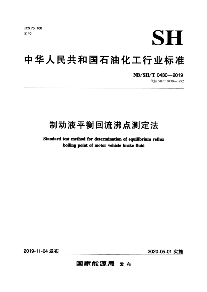 NB/SH/T 0430-2019 制动液平衡回流沸点测定法