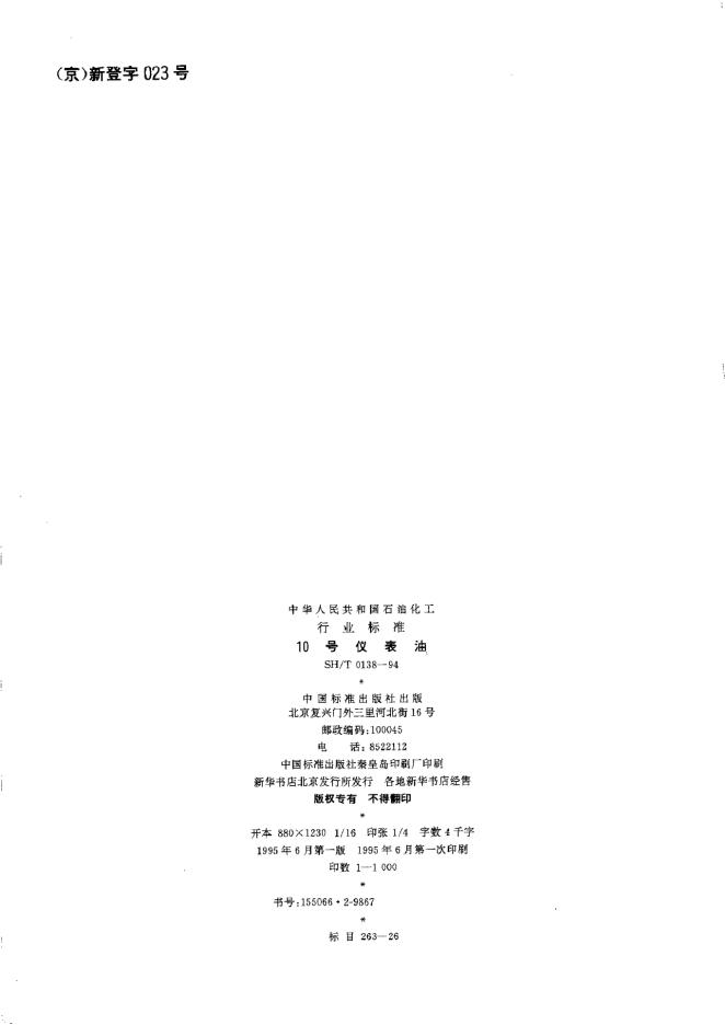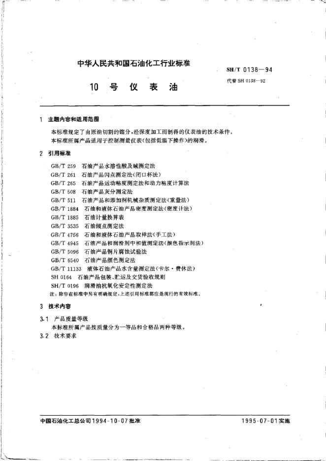 SH 0138-1992 仪表油