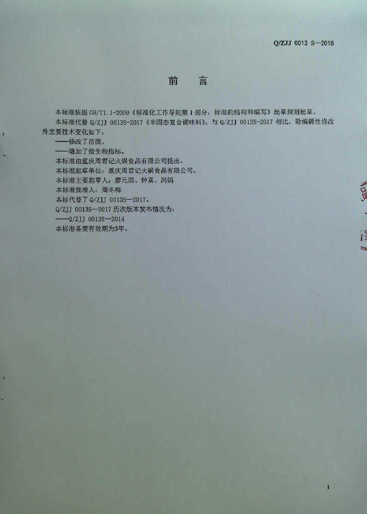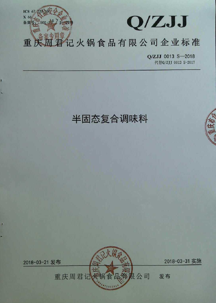 Q/ZJJ 0013S-2018 半固态复合调味料