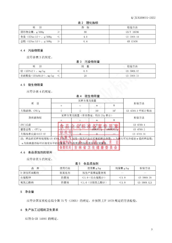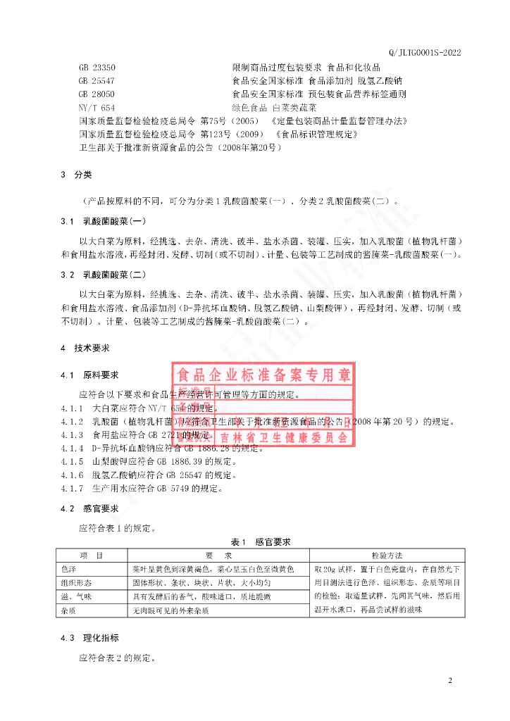 Q/JLTG 0001S-2022 乳酸菌酸菜