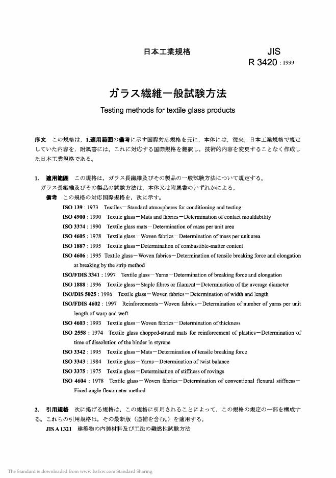 JIS R3420-1999 玻璃纤维一般试验方法.PDF