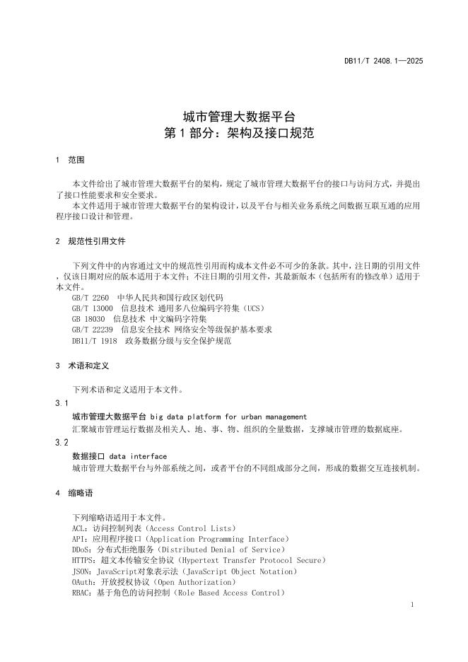 DB11/T 2408.1-2025 城市管理大数据平台 第1部分:架构及接口规范