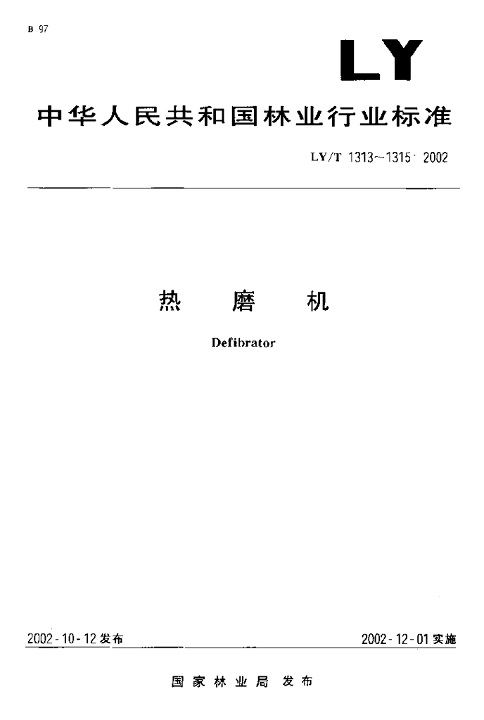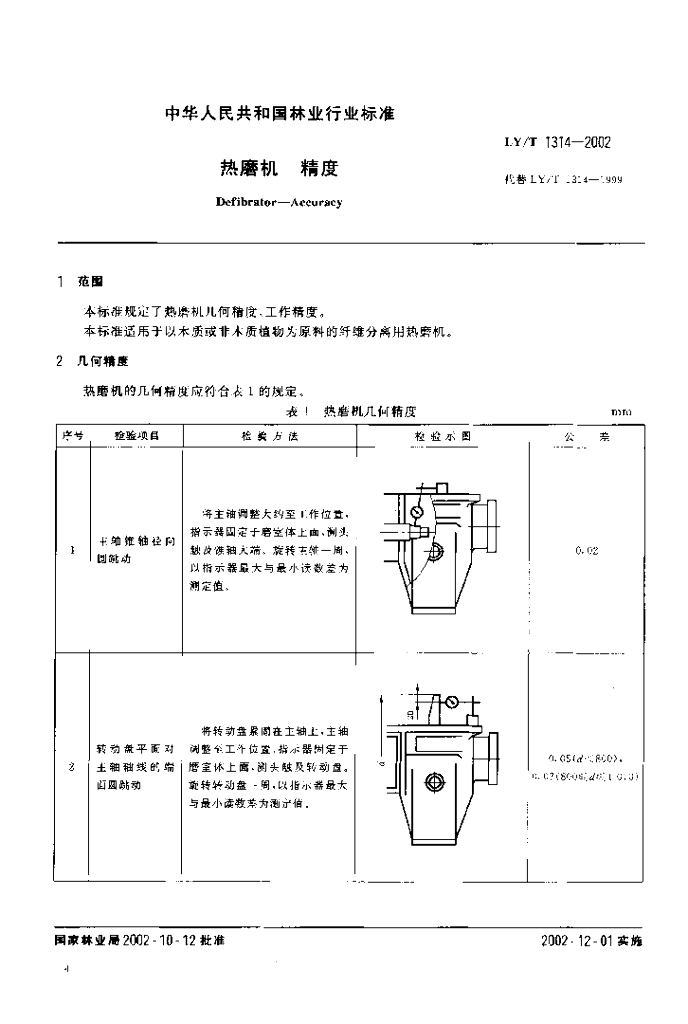LY/T 1314-2002 热磨机 精度