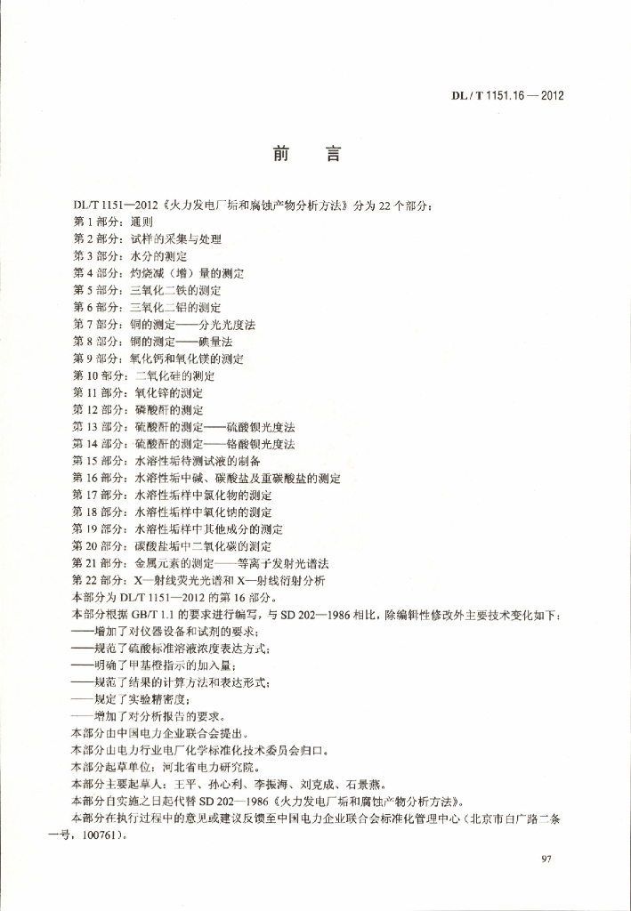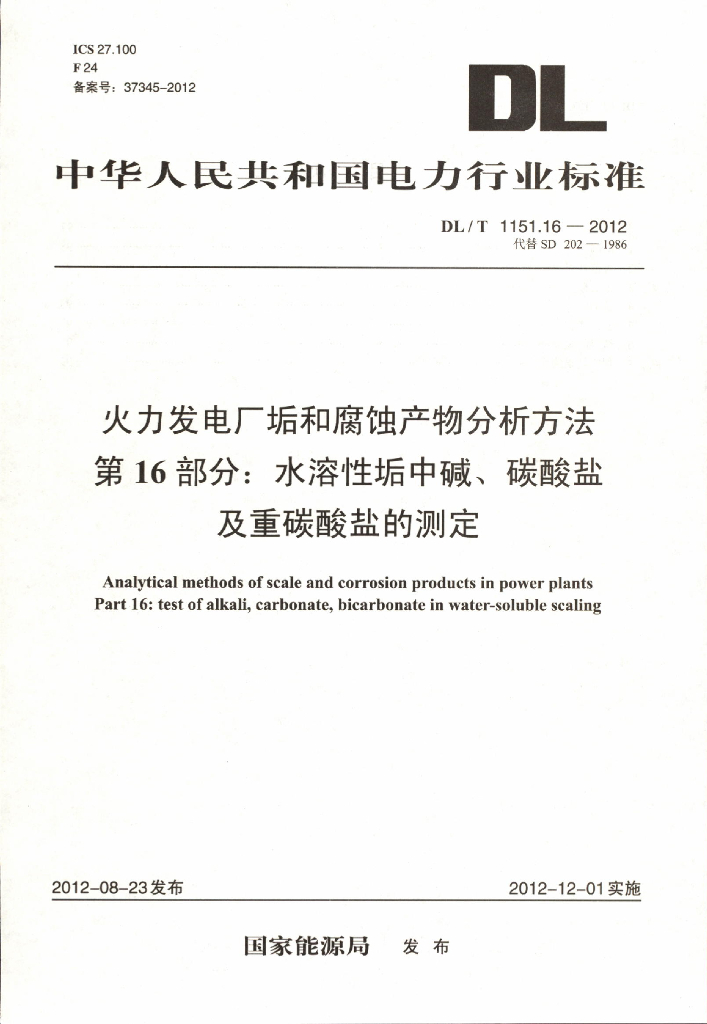 DL/T 1151.16-2012 火力发电厂垢和腐蚀产物分析方法 第16部分:水溶性垢中碱、碳酸盐及重碳酸盐的测定