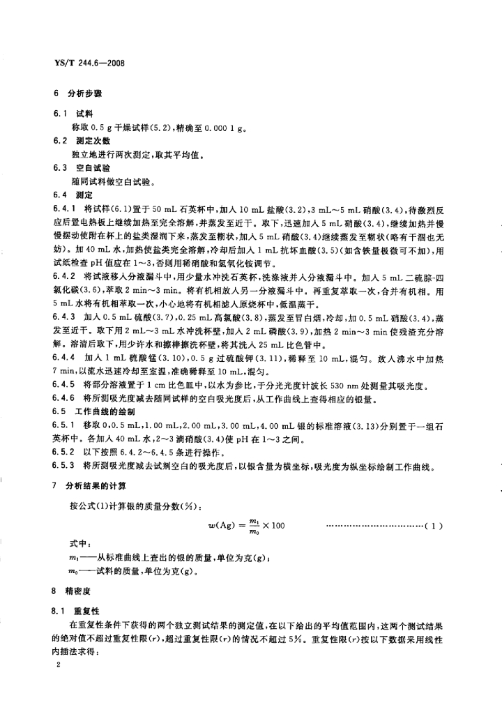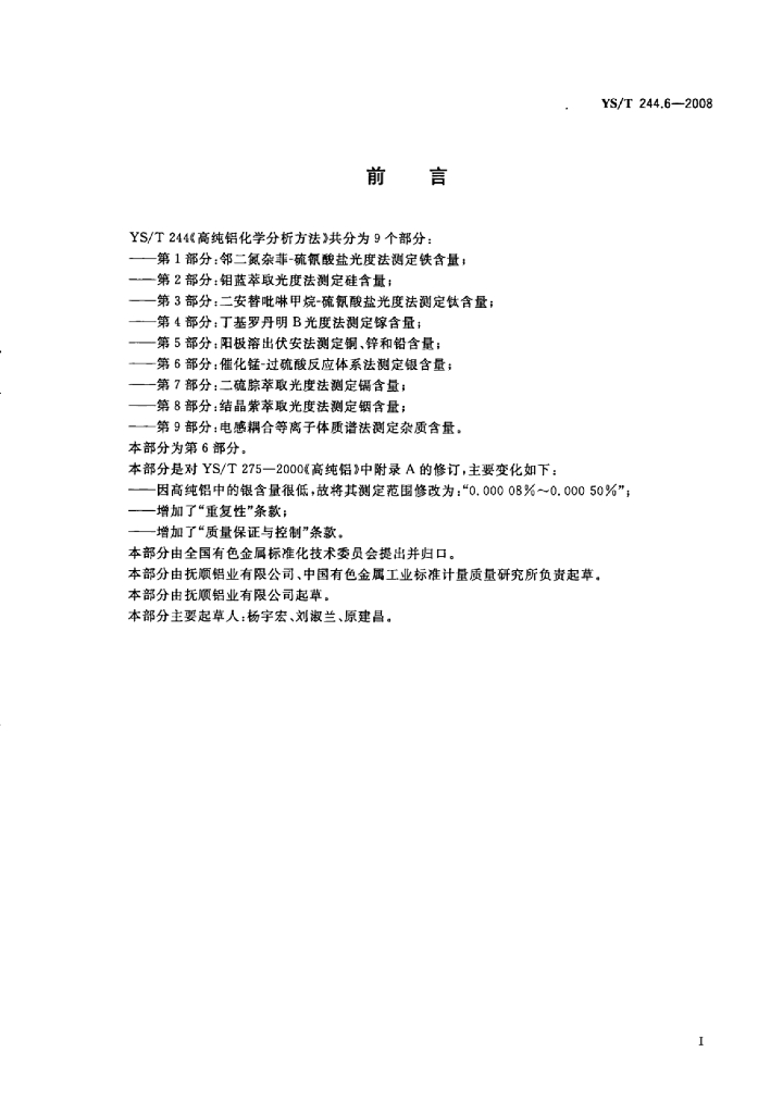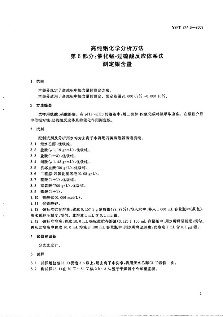 YS/T 244.6-2008 高纯铝化学分析方法 第6部分:催化锰-过硫酸反应体系法测定银含量