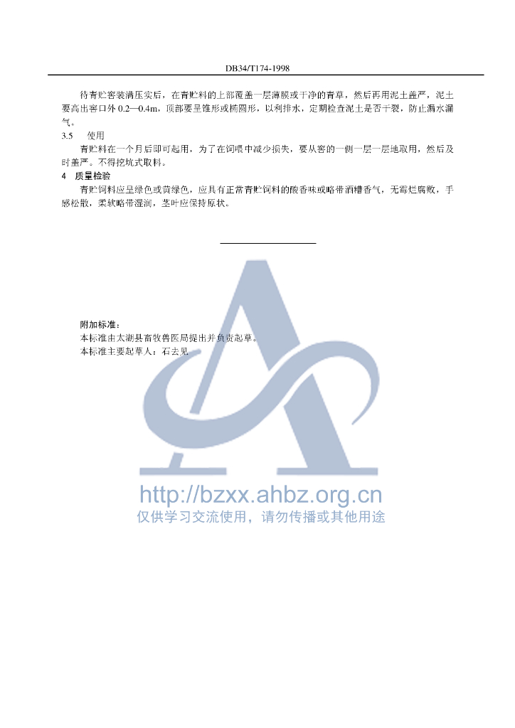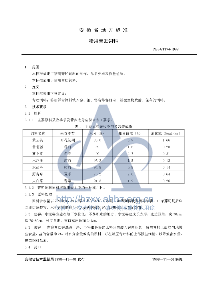 DB34/T 174-1998 猪用青贮饲料