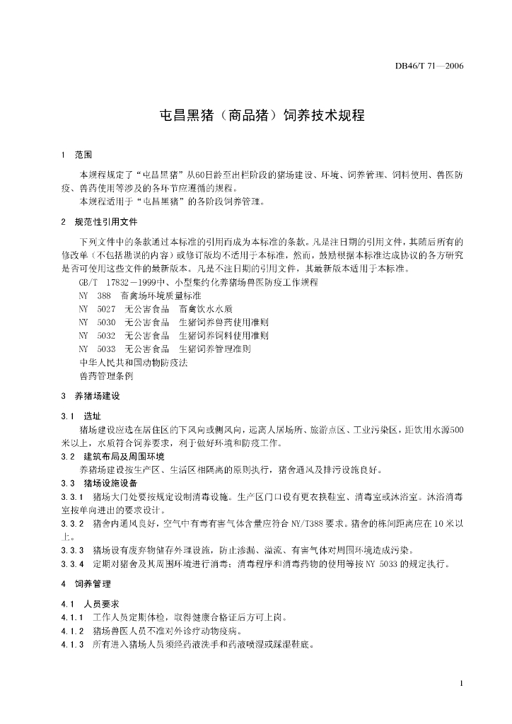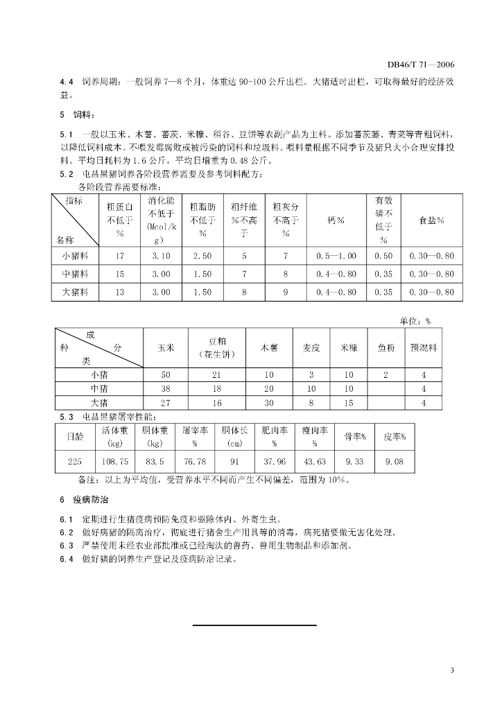 DB46/T 71-2006 屯昌黑猪(商品猪)饲养技术规程