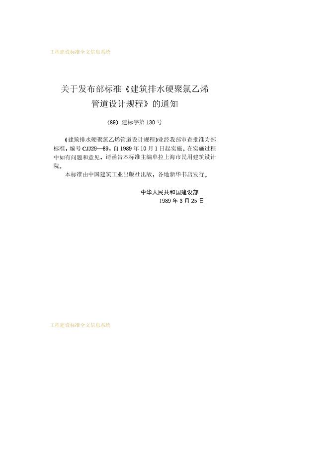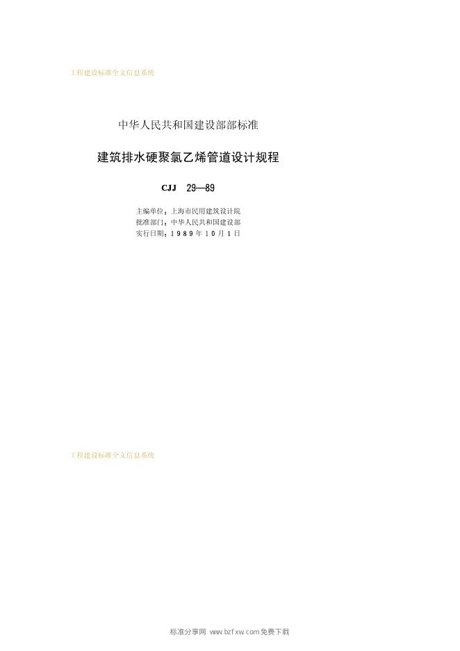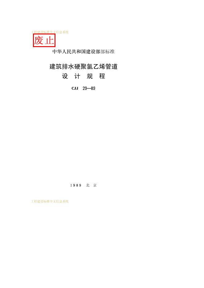CJJ 29-1989 建筑排水硬聚氯乙烯管道设计规程
