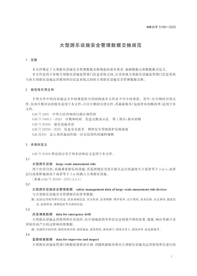 DB32/T 5199-2025 大型游乐设施安全管理数据交换规范