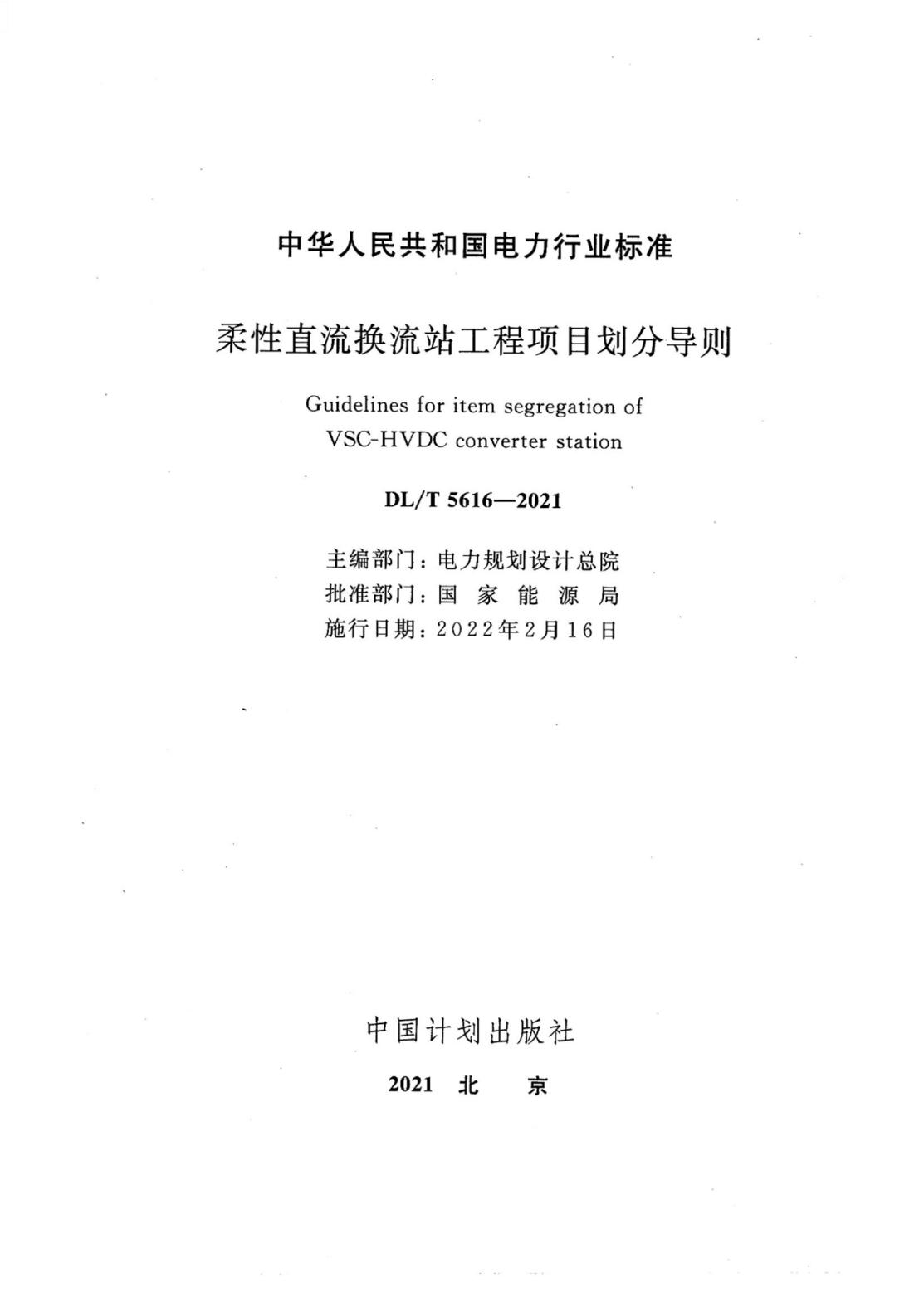 DL/T 5616-2021 柔性直流换流站工程项目划分导则