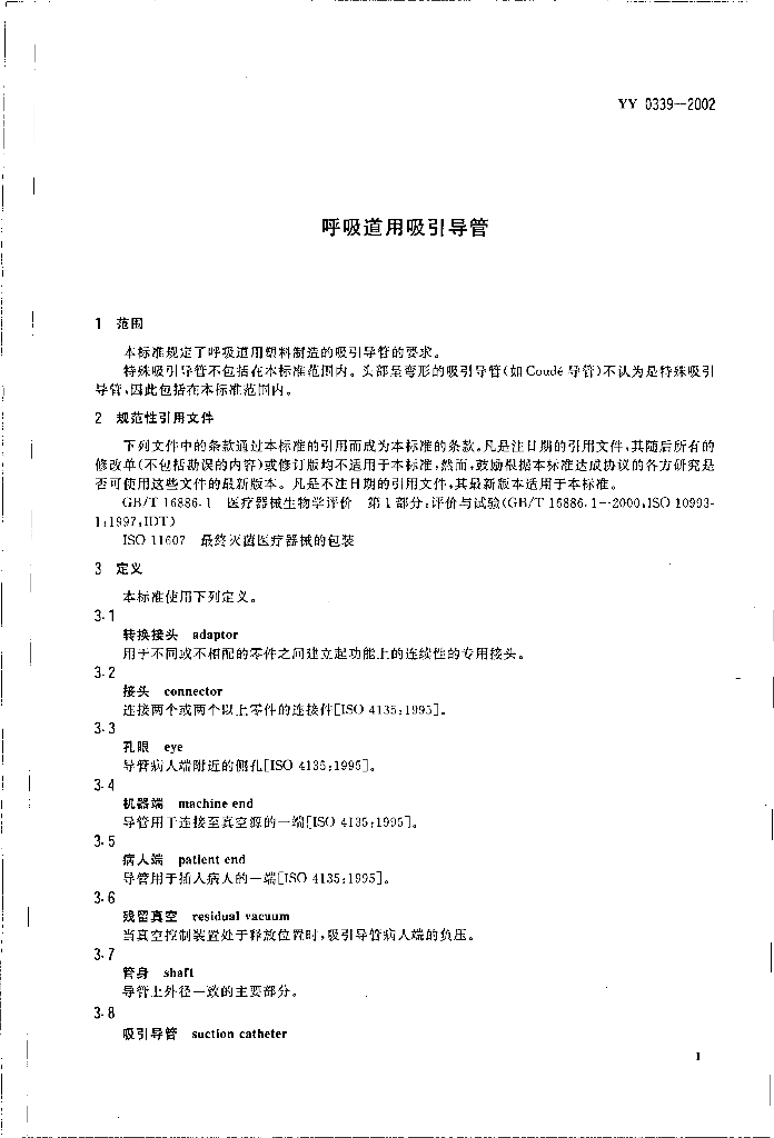 YY 0339-2002 呼吸道用吸引导管