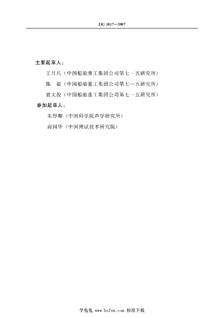 王月兵(中国船舶重工集团公司第七一五研究所)、陈毅(中国船舶重工集团公司第七一五研究所)、袁文俊(中国船舶重工集团公司第七一五研究所、朱厚卿(中国科学院声学研究所)、商国华(中国测试技术研究院)