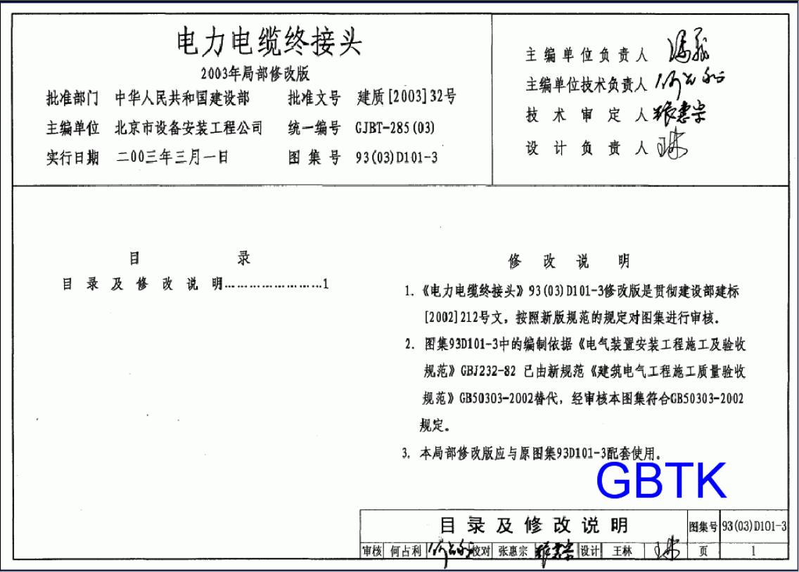 93D101-3、93(03)D101-3.电力电缆终端头及接头图集(2003年修改版)