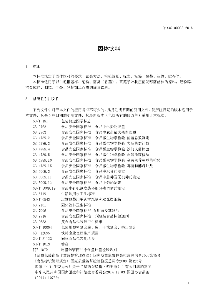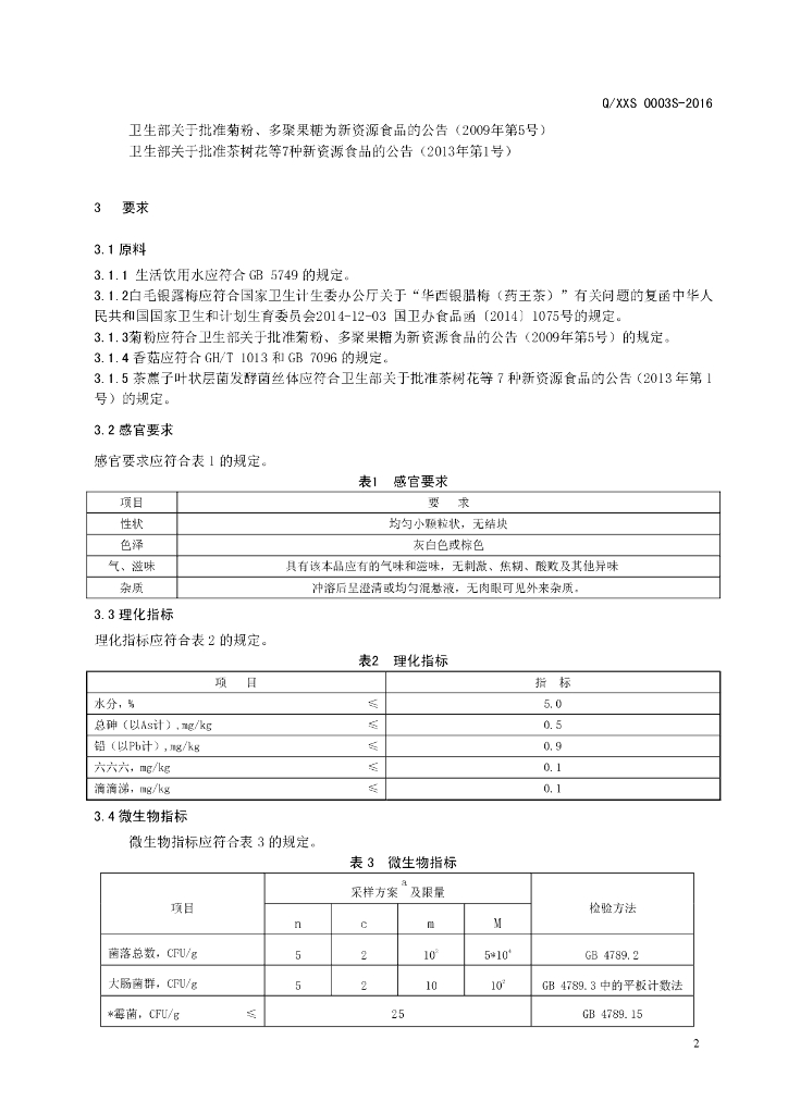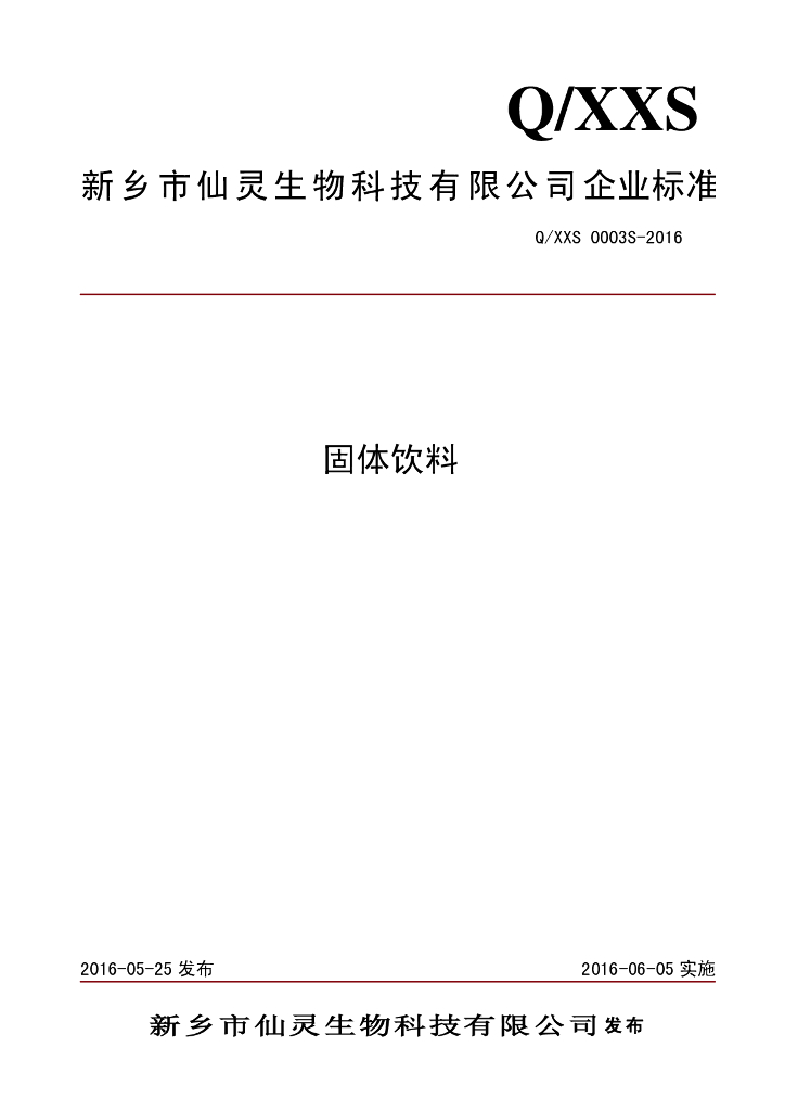 Q/XXS 0003S-2016 新乡市仙灵生物科技有限公司 固体饮料