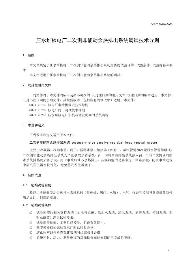 NB/T 20680-2023 压水堆核电厂二次侧非能动余热排出系统调试技术导则