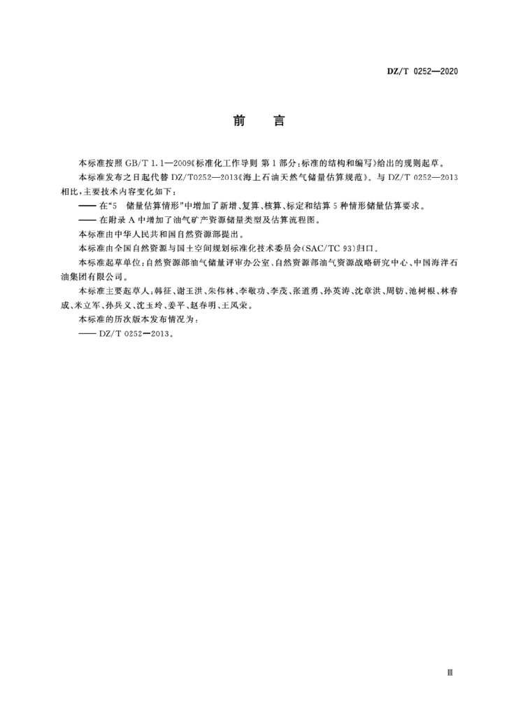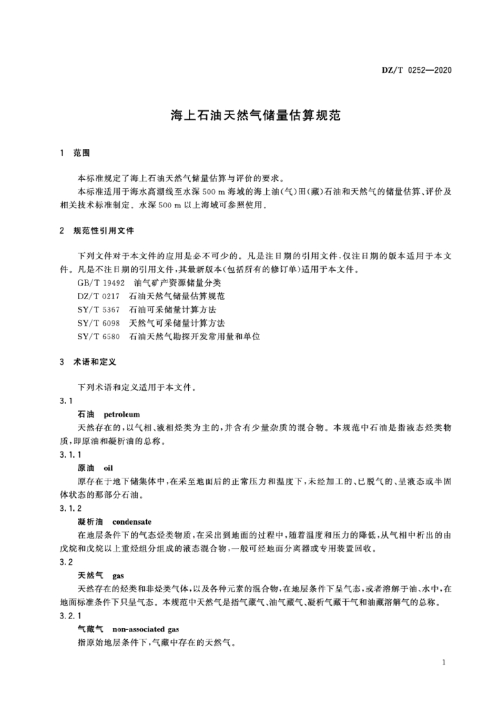 DZ/T 0252-2020 海上石油天然气储量估算规范