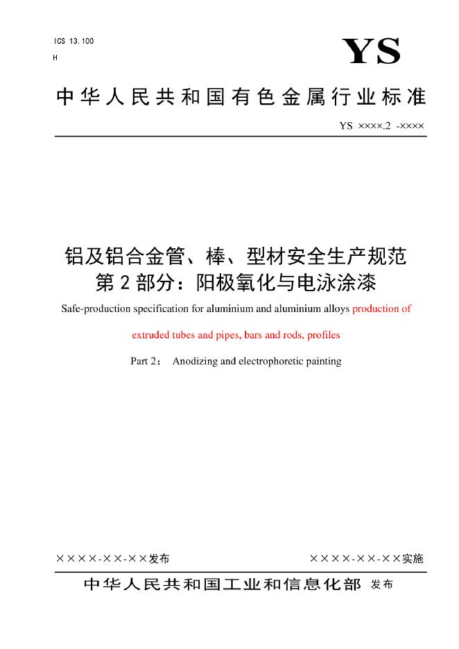 YS/T 769.2-2011 铝及铝合金管、棒、型材安全生产规范 第2部分:阳极氧化与电泳涂漆