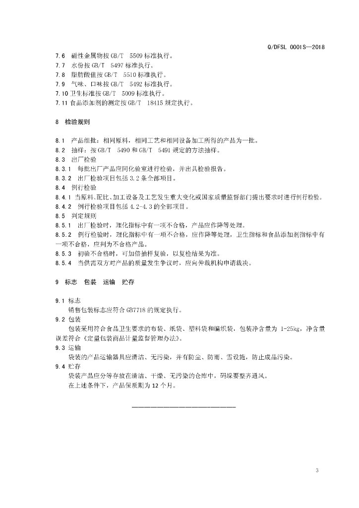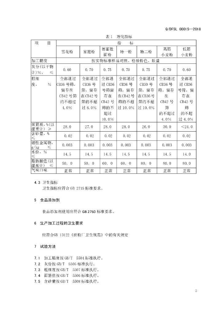 Q/DFSL 0001S-2018 小麦粉(通用)