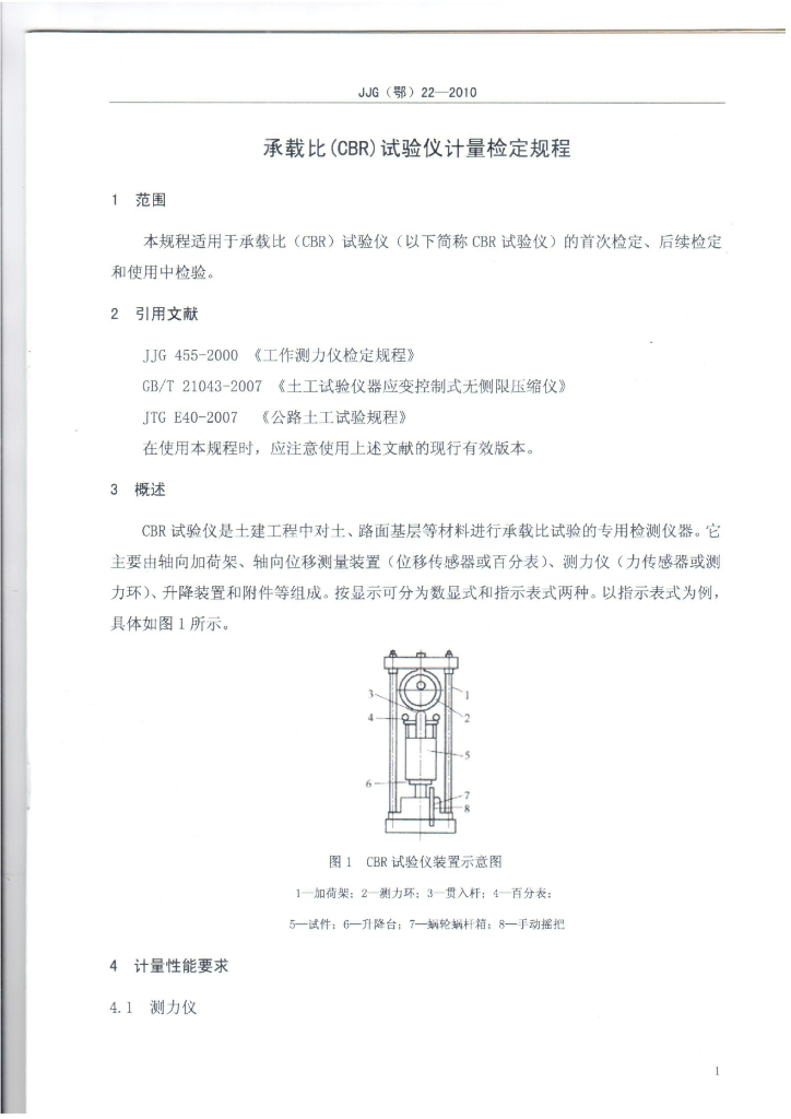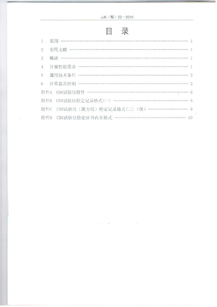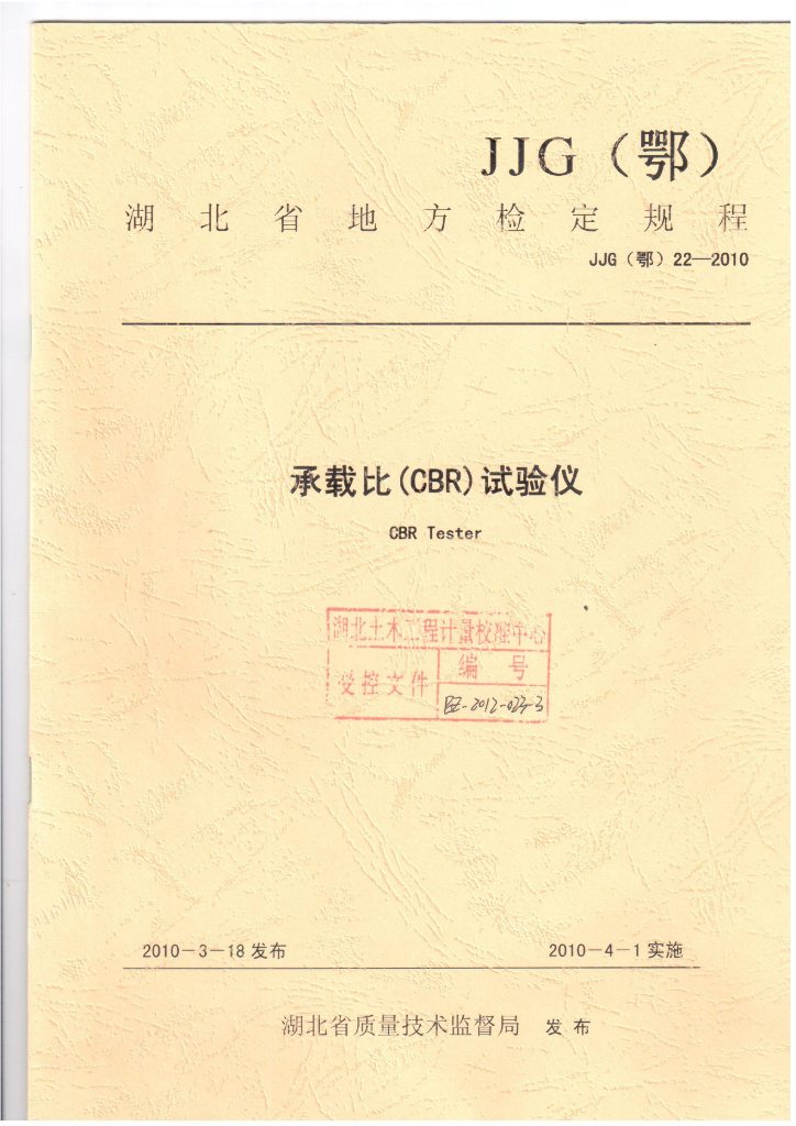 JJG(鄂)22-2010 承载比(CBR)试验仪计量检定规程