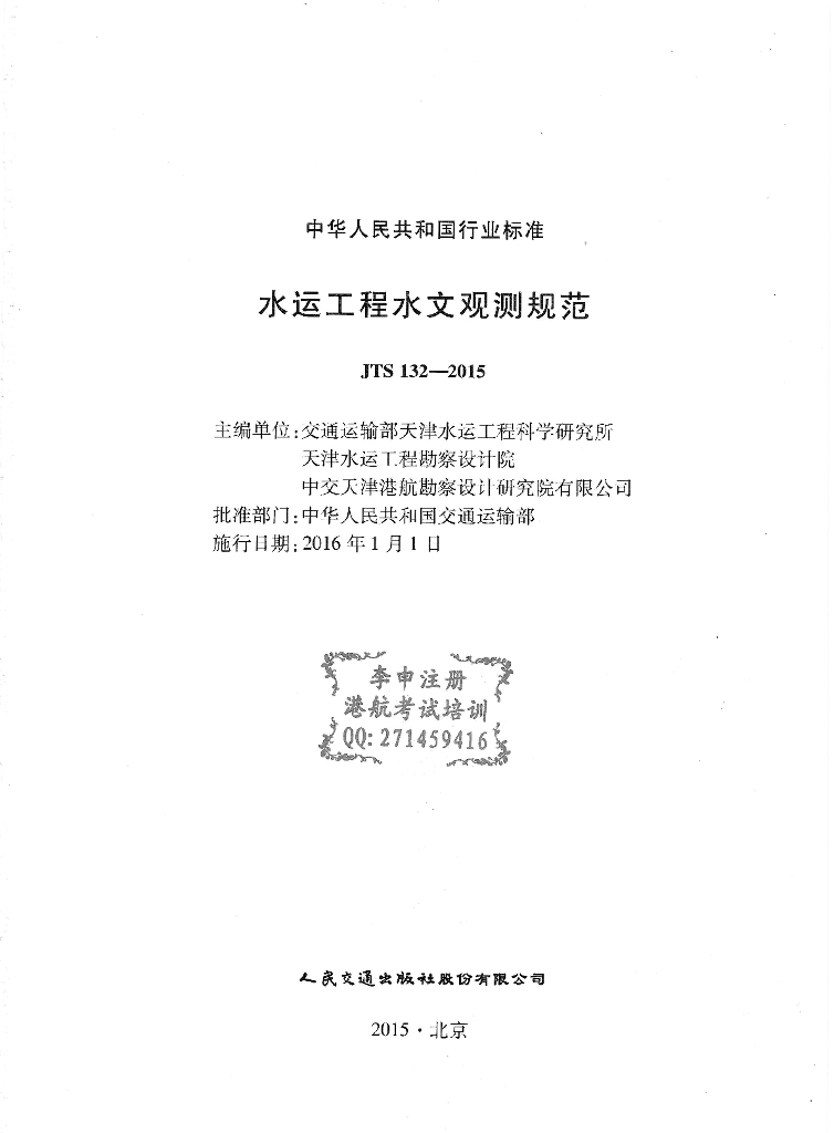 交通运输部天津水运工程科学研究所、天津水运工程勘察设计院、中交天津港航勘察设计研究院有限公司、交通运输部北海航海保障中心、中交第一航务工程勘察设计院有限公司、中交第二航务工程勘察设计院有限公司、中交上海航道局有限公司、中交广州航道局有限公司、长江重庆航运工程勘察设计院、南京水利科学研究院