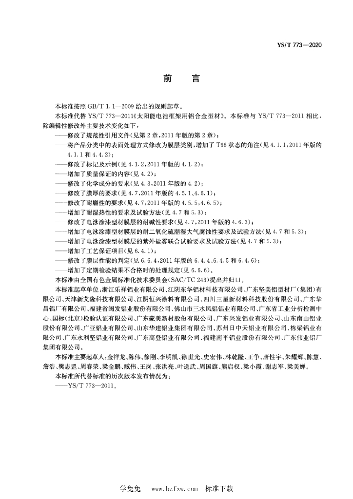 YS/T 773-2020 太阳能电池框架用铝合金型材