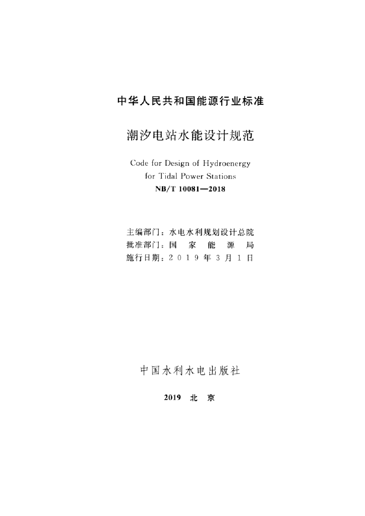NB/T 10081-2018 潮汐电站水能设计规范