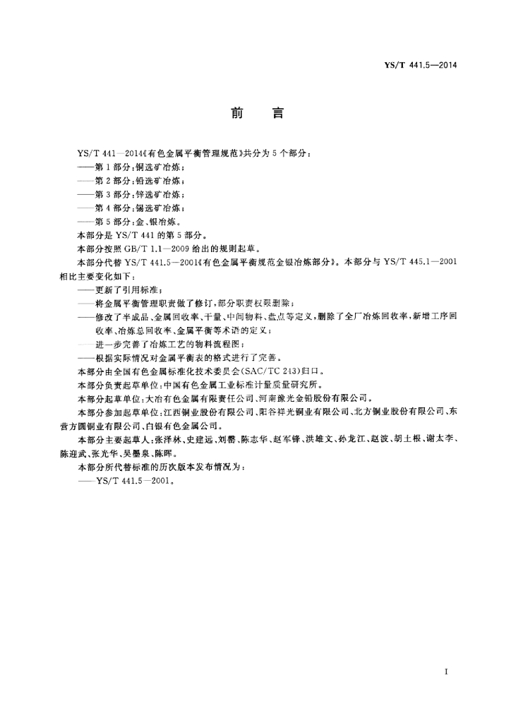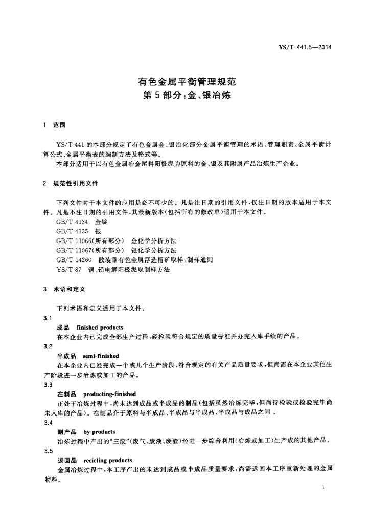 YS/T 441.5-2014 有色金属平衡管理规范 第5部分:金、银冶炼