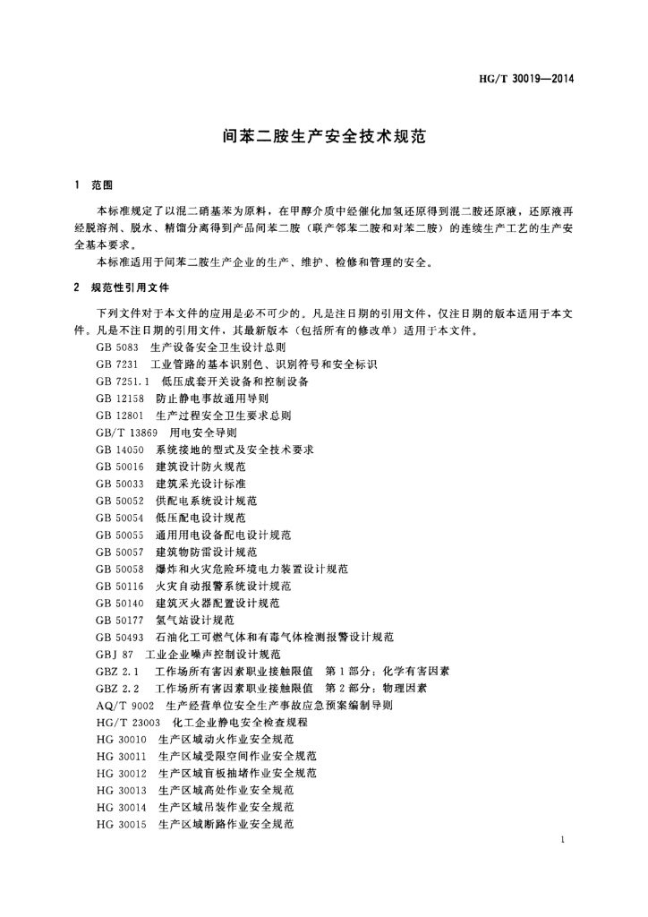 HG/T 30019-2014 间苯二胺生产安全技术规范