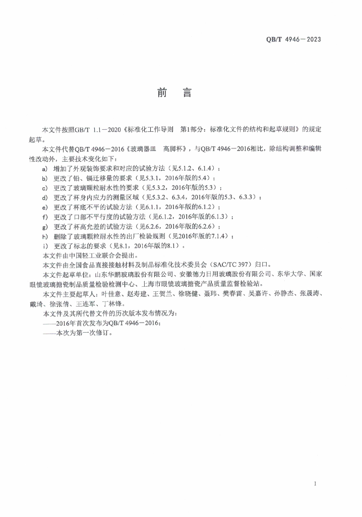 山东华鹏玻璃股份有限公司、安徽德力日用玻璃股份有限公司、东华大学、国家眼镜玻璃搪瓷制品质量检验检测中心、上海市眼镜玻璃搪瓷产品质量监督检验站