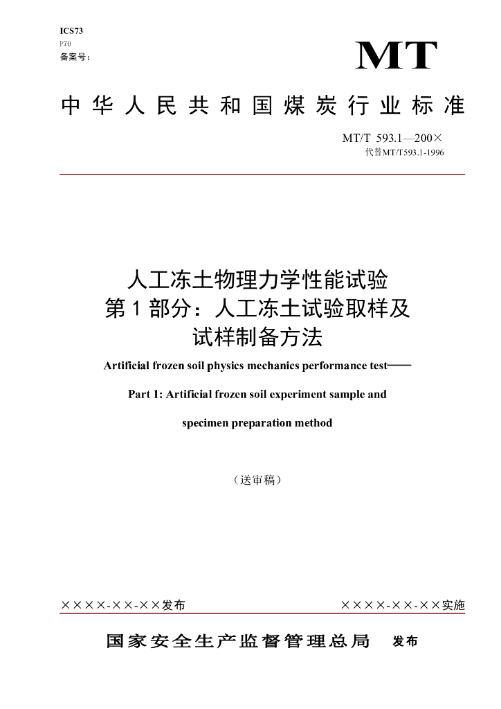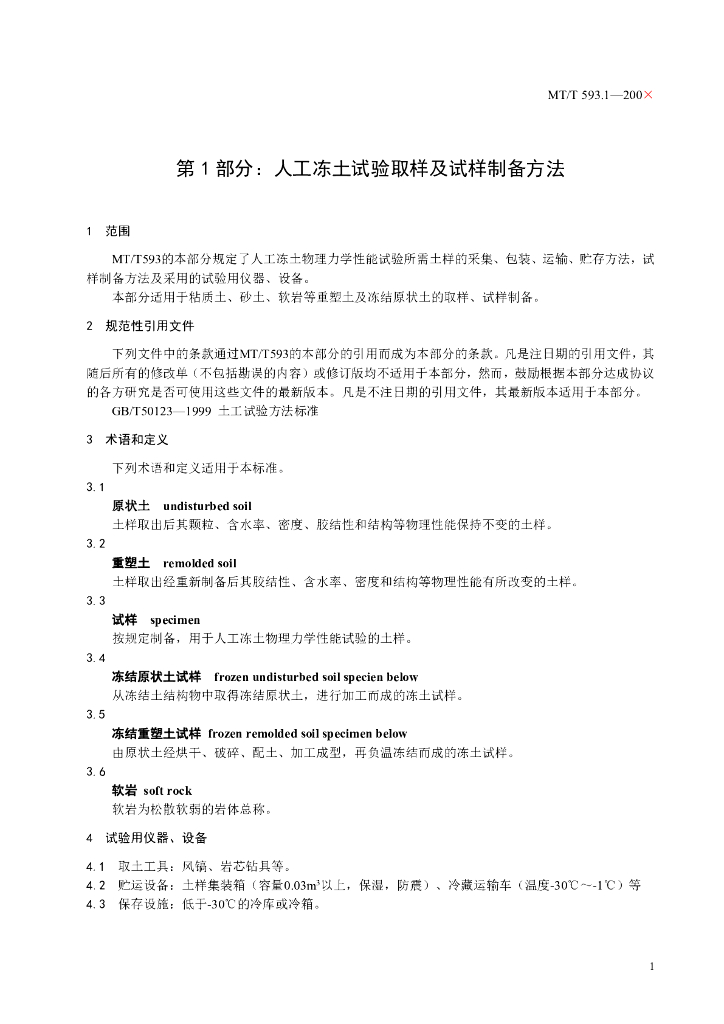 MT/T 593.1-2011 人工冻土物理力学性能试验 第1部分:人工冻土试验取样及试样制备方法