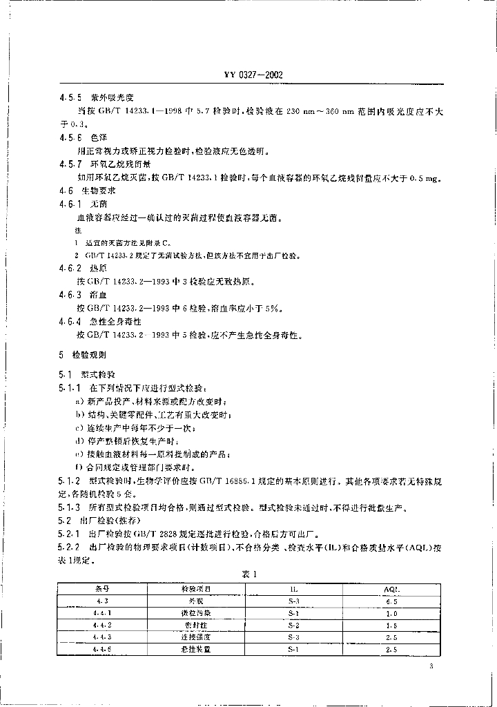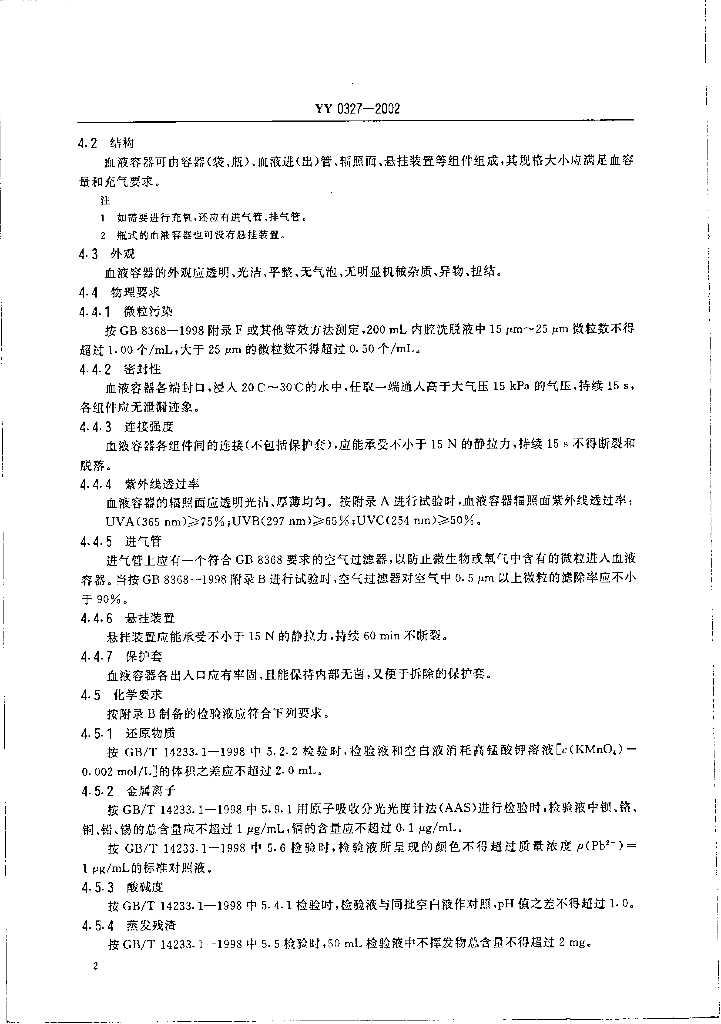 YY 0327-2002 一次性使用紫外线透疗血液容器