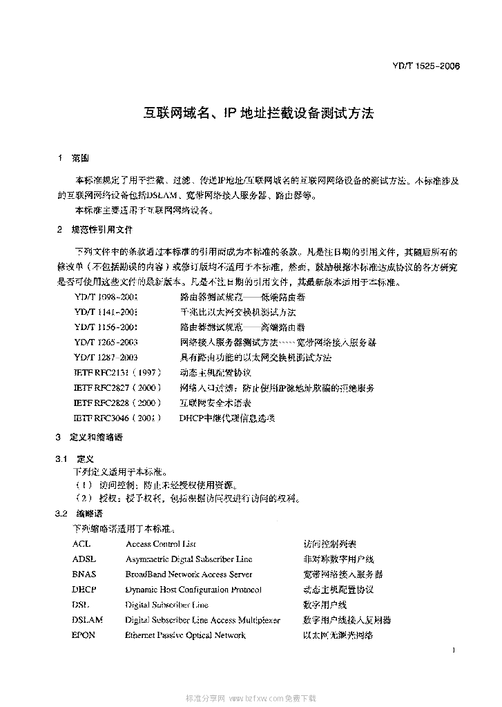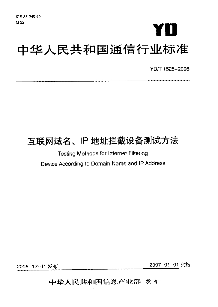 YD/T 1525-2006 互联网域名、IP 地址拦截设备测试方法