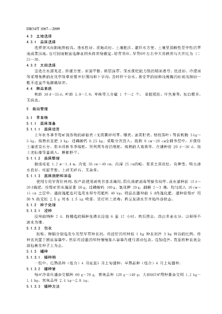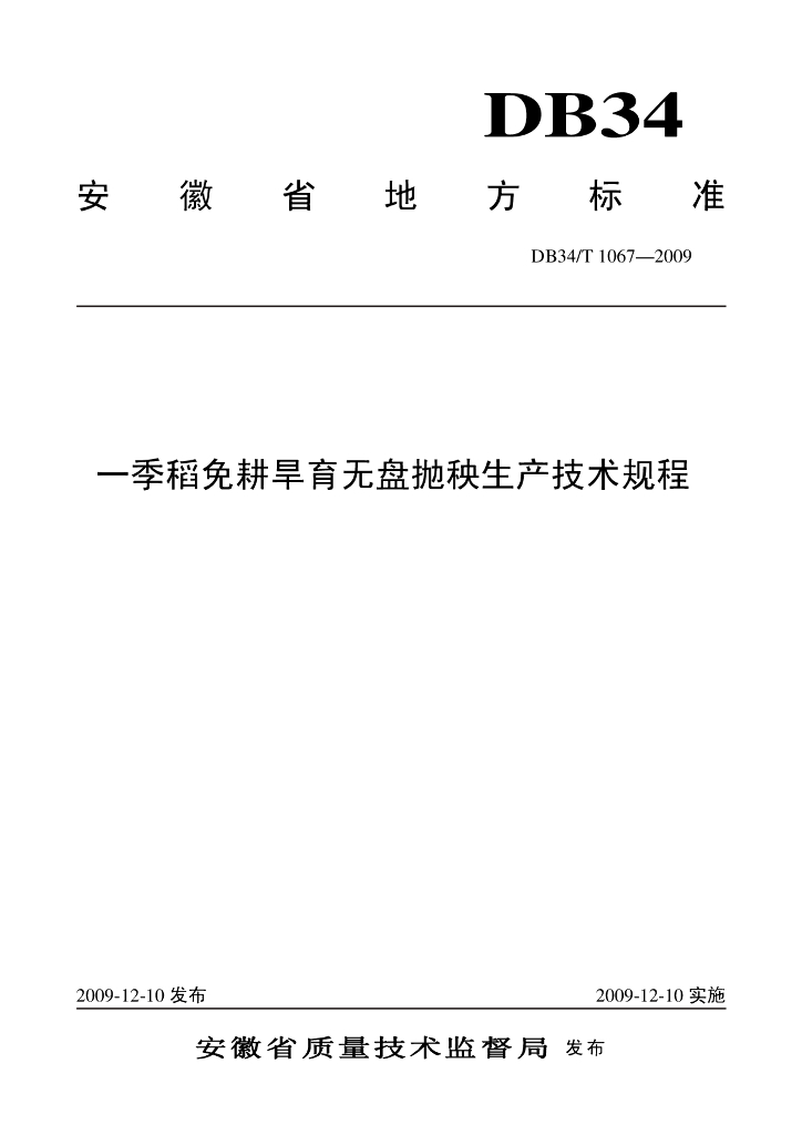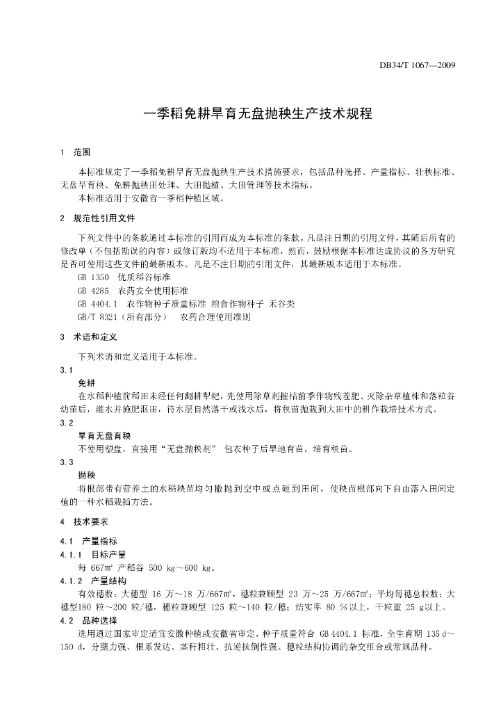 DB34/T 1067-2009 一季稻免耕旱育无盘抛秧生产技术规程