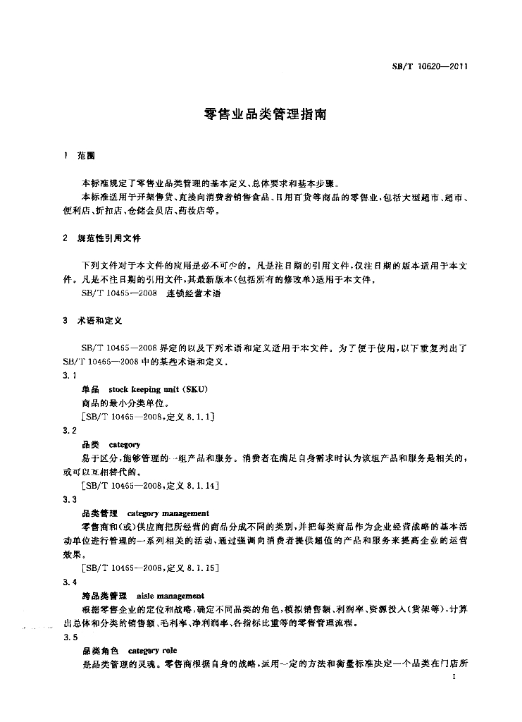 SB/T 10620-2011 零售业品类管理指南