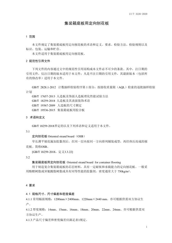 LY/T 3226-2020 集装箱底板用定向刨花板