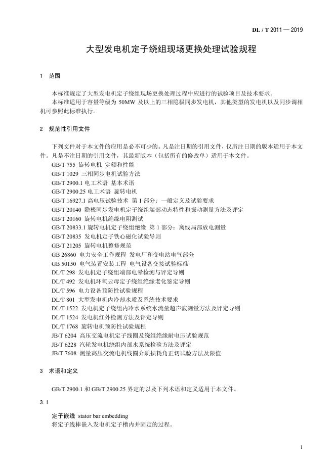 DL/T 2011-2019 大型发电机定子绕组现场更换处理试验规程