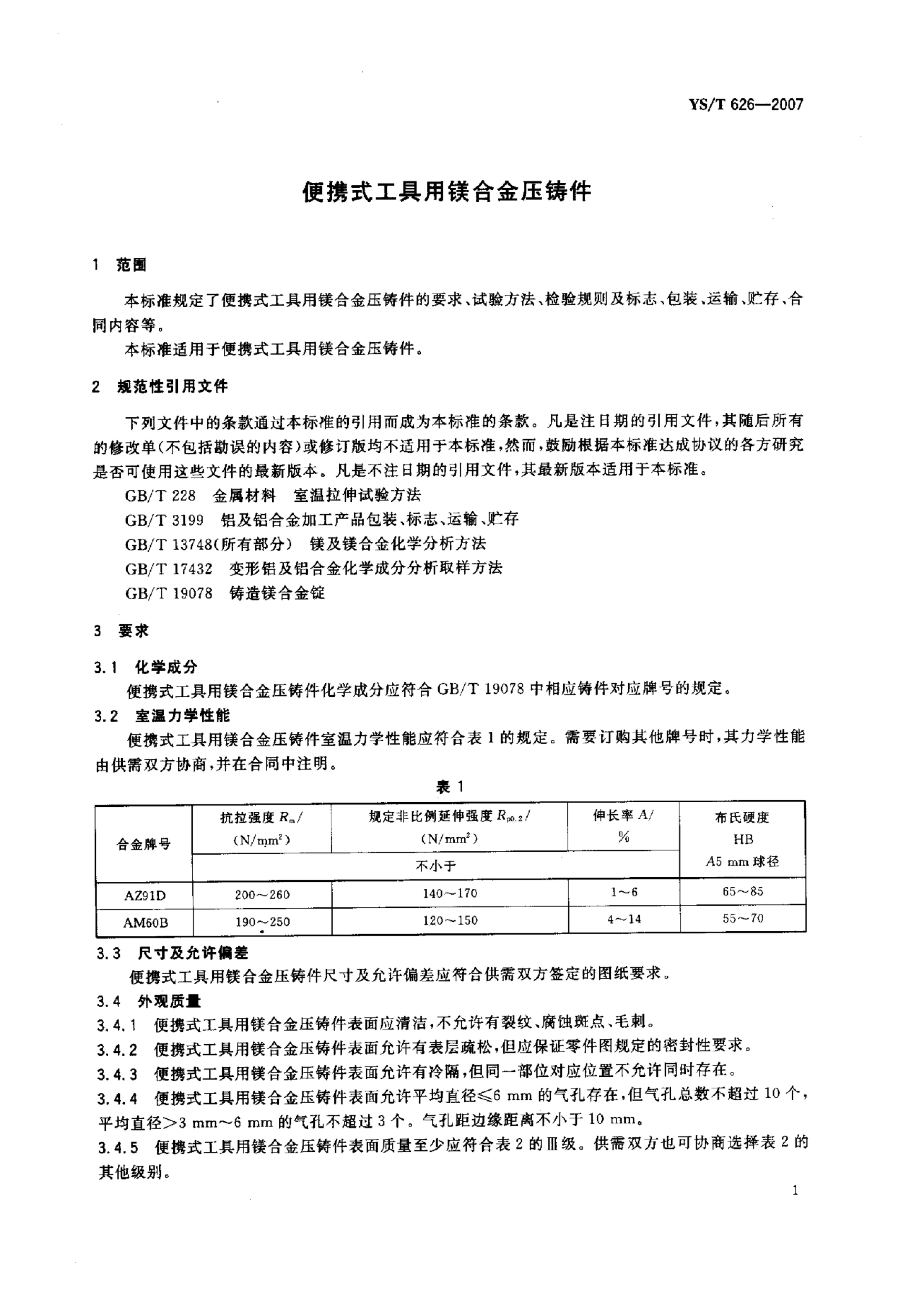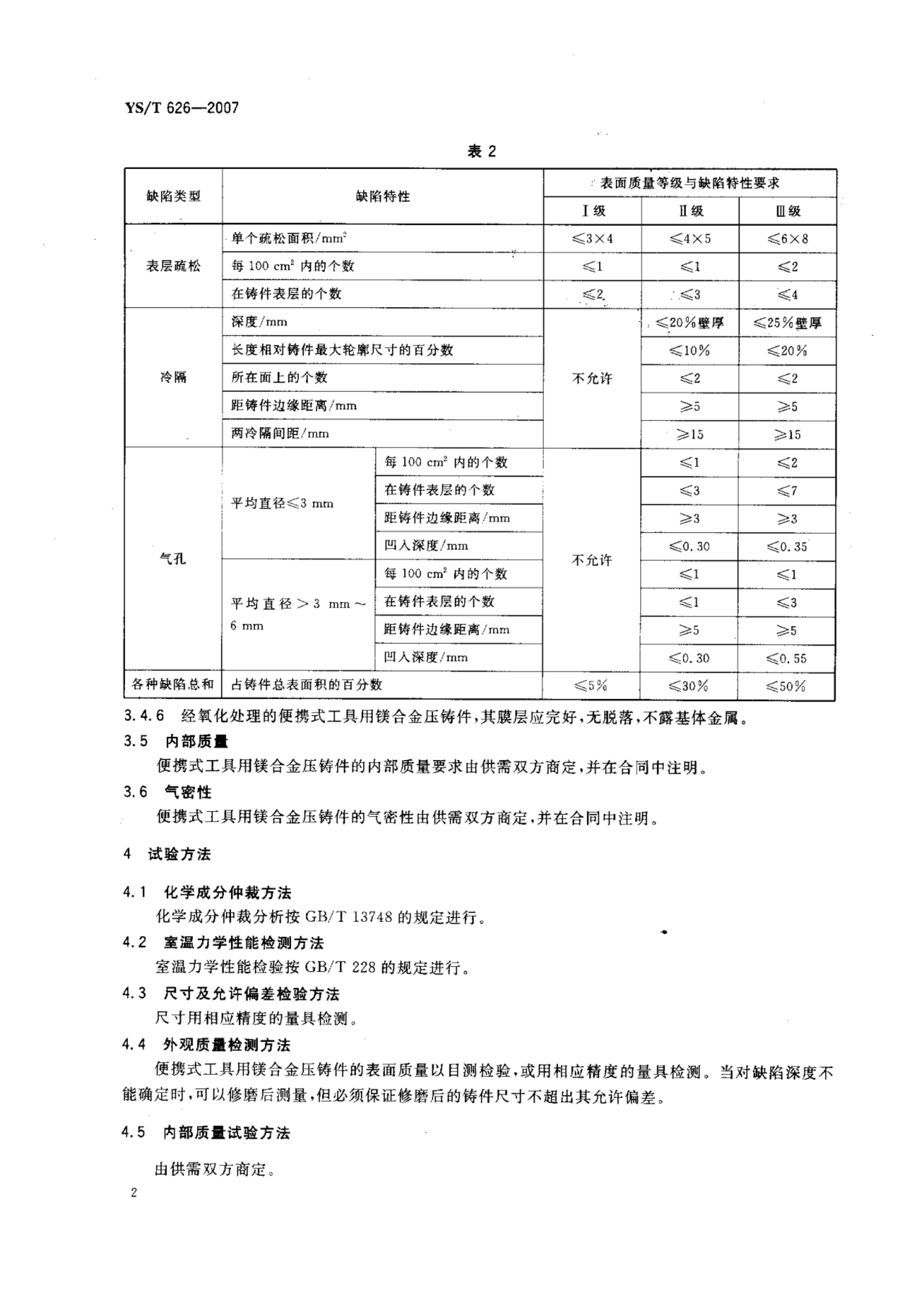 YS/T 626-2007 便携式工具用镁合金压铸件