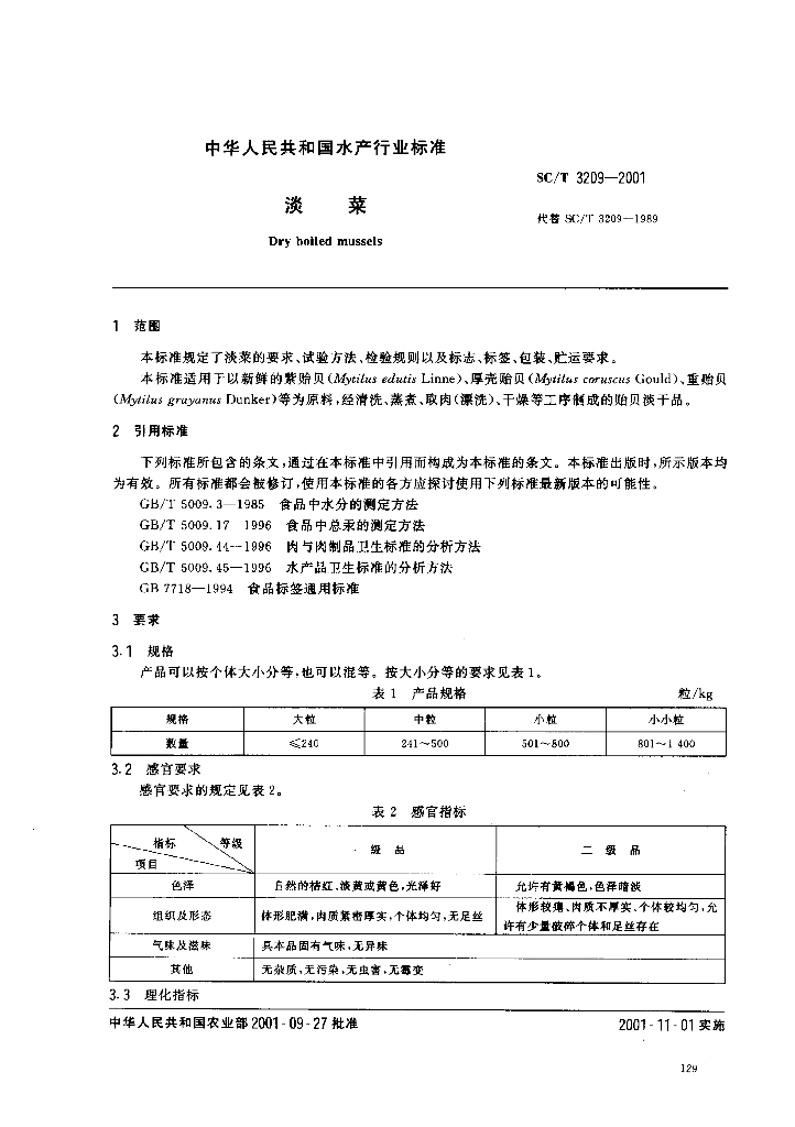 SC/T 3209-2001 淡菜