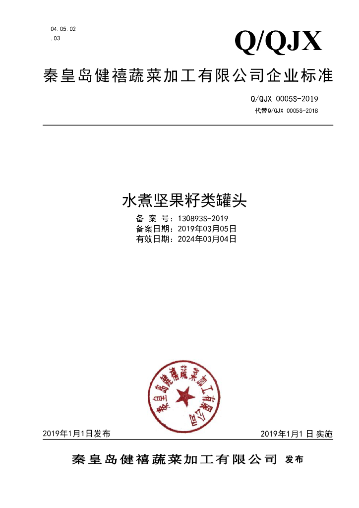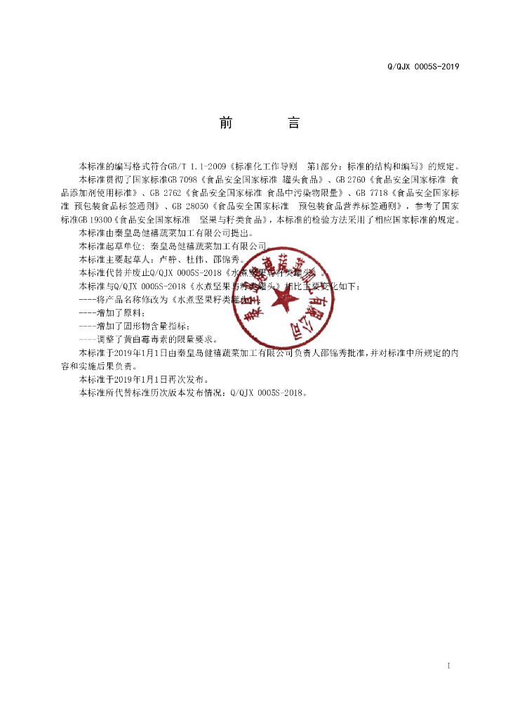 Q/QJX 0005S-2019 水煮坚果籽类罐头
