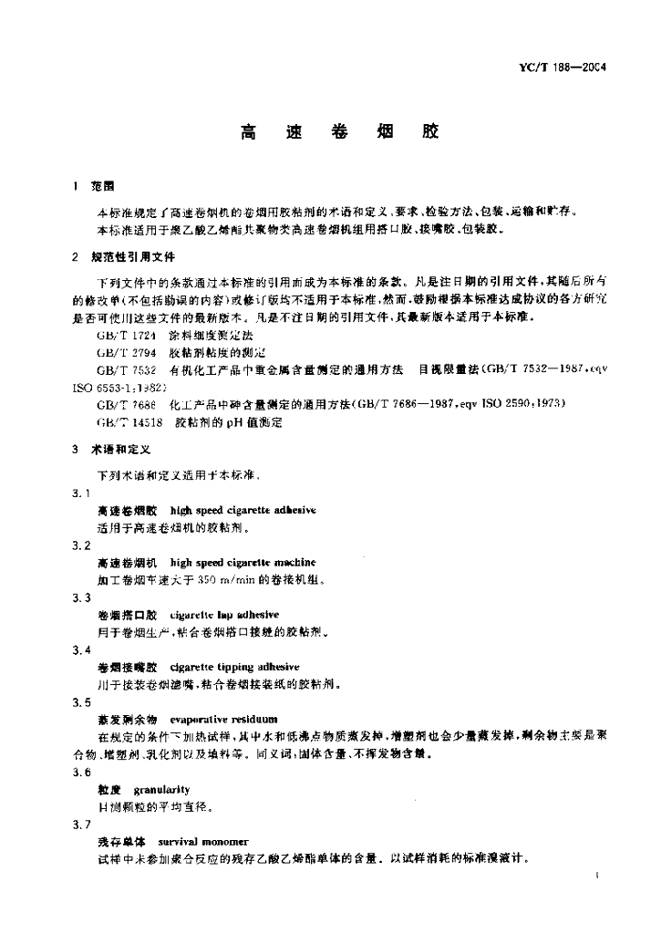 YC/T 188-2004 高速卷烟胶
