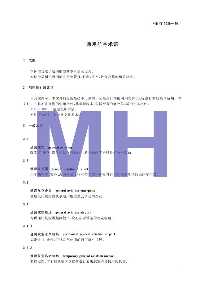 MH/T 1039-2011 通用航空术语