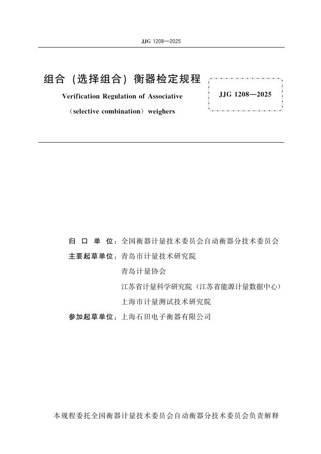 JJG 1208-2025 组合(选择组合)衡器检定规程