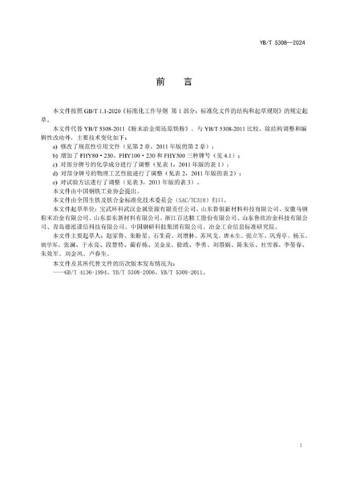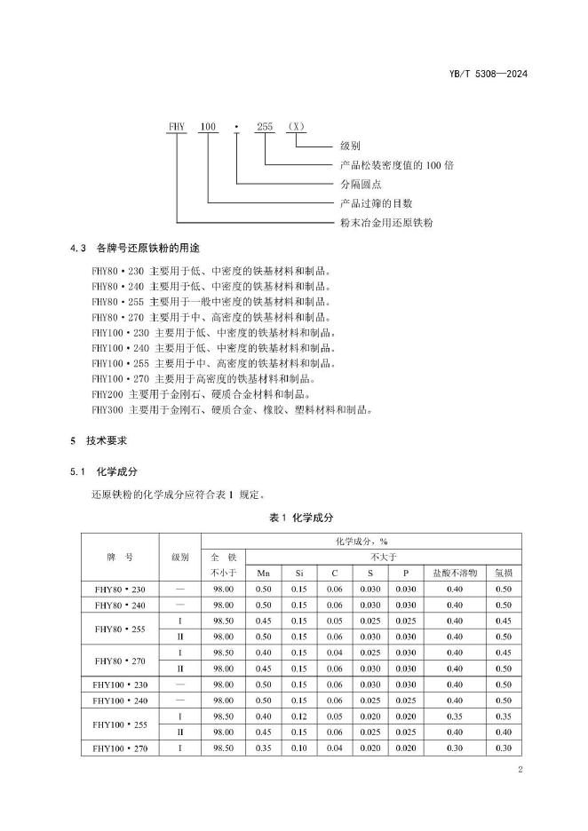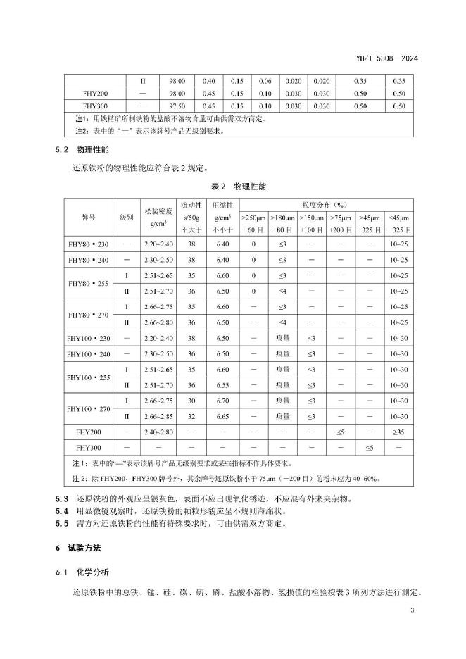 YB/T 5308-2024 粉末冶金用还原铁粉