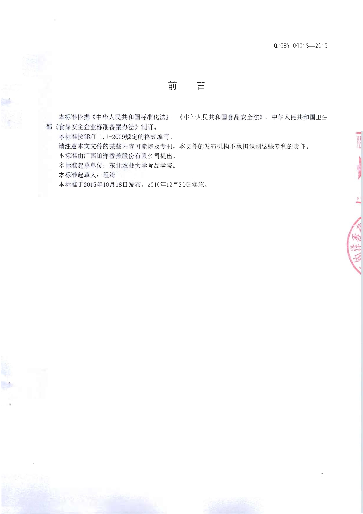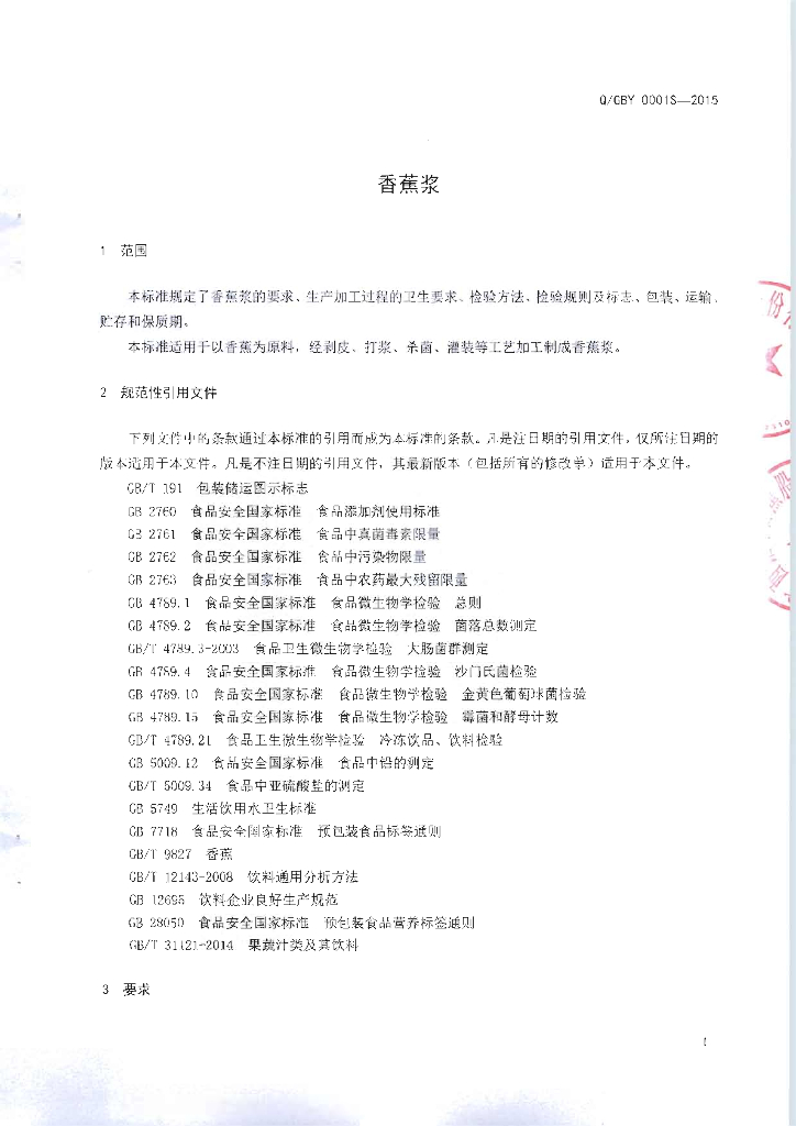 Q/GBY 0001S-2015 广西铂洋香蕉股份有限公司 香蕉浆