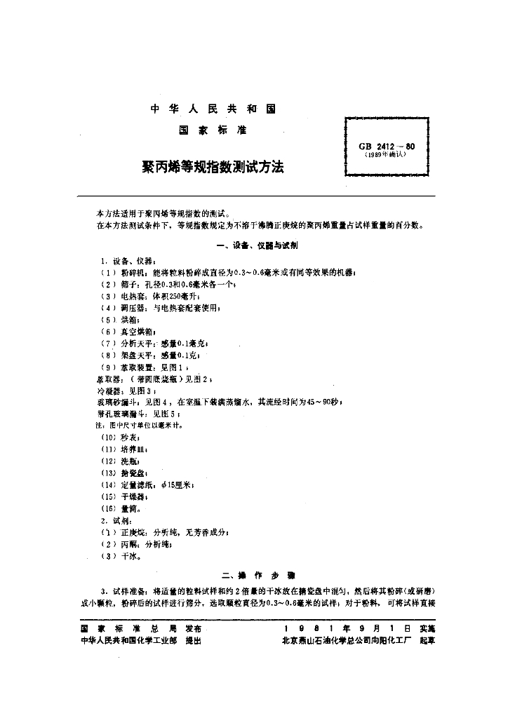 GB/T 2412-1980 聚丙烯等规指数测试方法