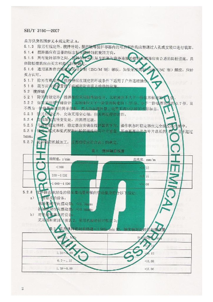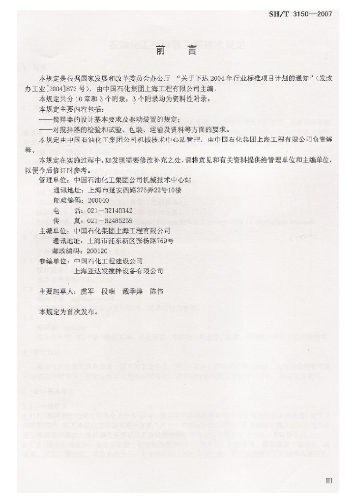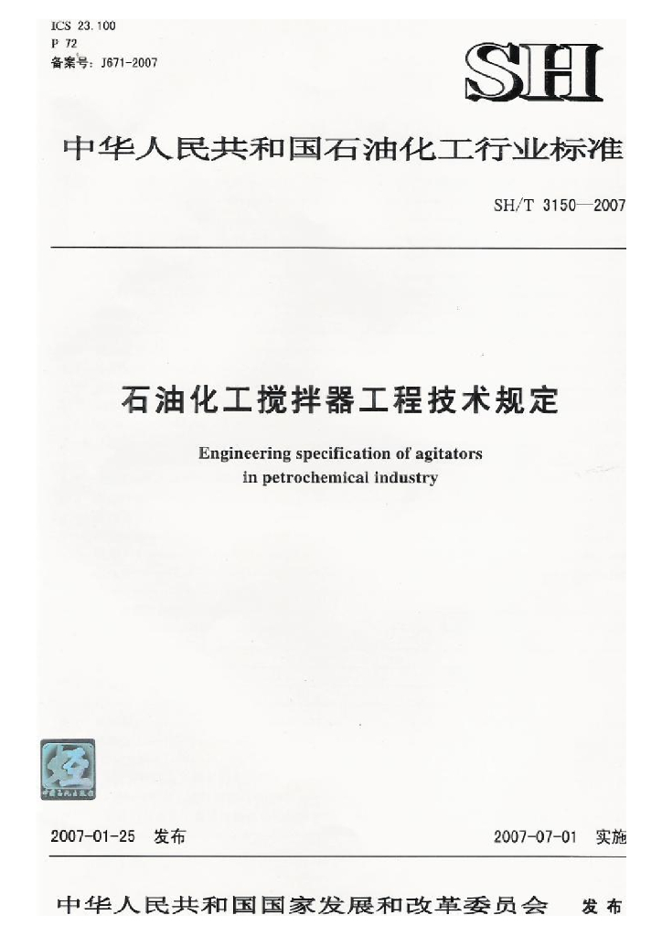 SH/T 3150-2007 石油化工搅拌器工程技术规定