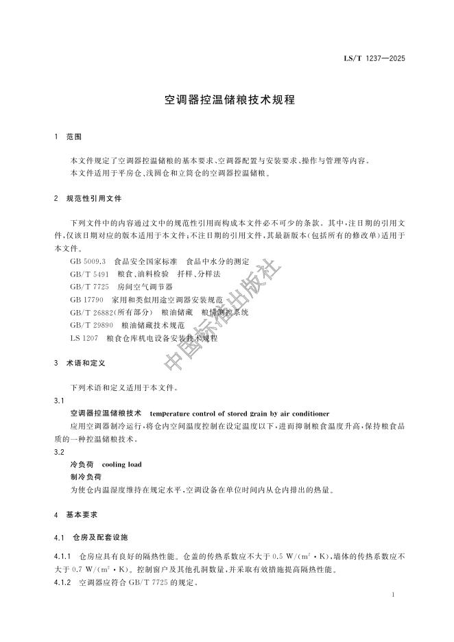 LS/T 1237-2025 空调器控温储粮技术规程