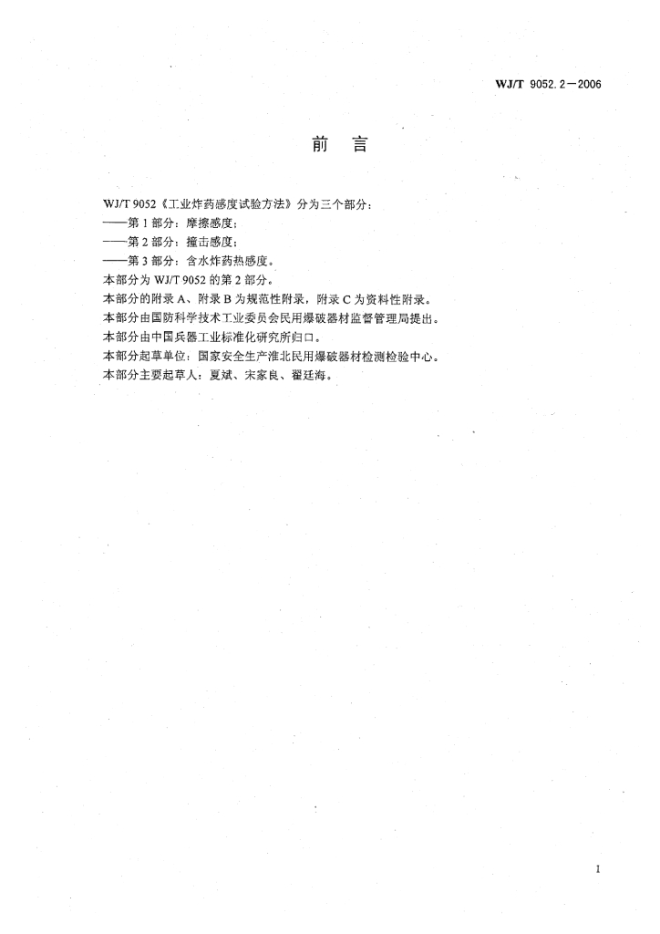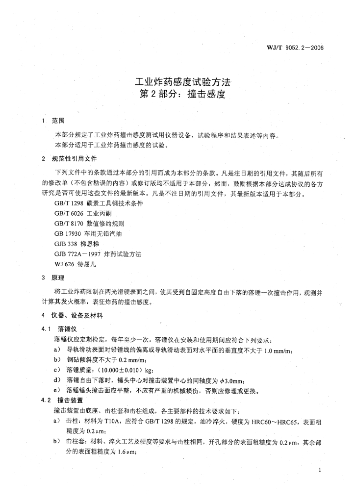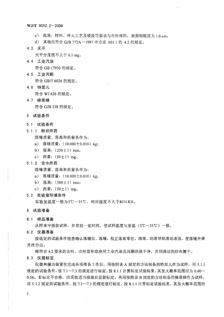 WJ/T 9052.2-2006 工业炸药感度试验方法 第2部分:撞击感度