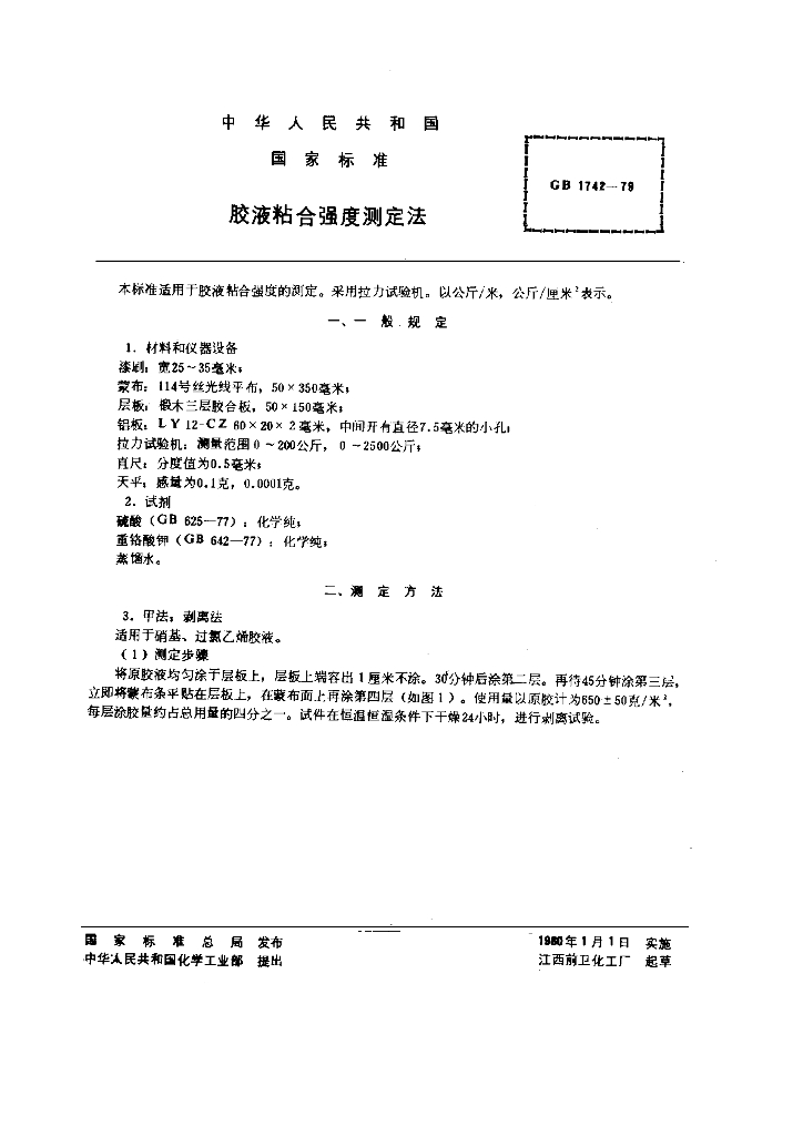 GB/T 1742-1979 胶液粘合强度测定法